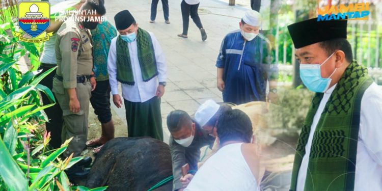 Gubernur Al Haris Serahkan Hewan Kurban di Mesjid Al Falah Jambi