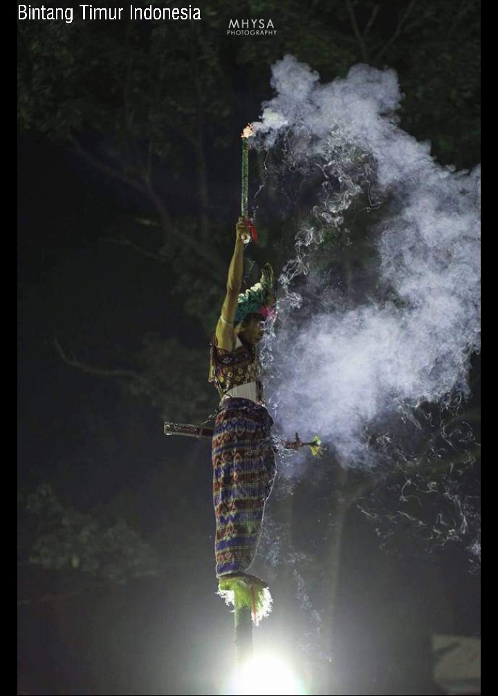 Saya diperlihatkan foto dan video kegiatan BTI, pertunjukan Tari Tua reta Lo u, dimana seorang pria berbusana adat lengkap tengah lenggak-lenggok di atas sebuah bambu yang tingginya 3-7 meter. Di atas bambu itu, ia menari sambil memegang pedang. Di bawah ada kurang lebih 4 orang pria yang memegang tiang bambu itu.