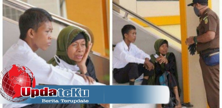 Ibu asal Nagan Raya, Hj Hasanah bersama anaknya, Chayruel Wahied duduk di tangga hotel menunggu giliran mengikuti SKD CPNS Kejaksaan RI wilayah Aceh, Senin (27/9/2021). (https://www.instagram.com/biropegkejaksaan/)