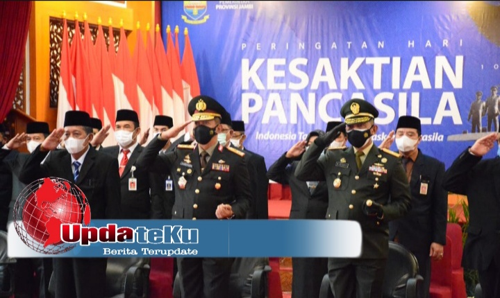 UpdateKu.com – Kapolda Jambi Irjen Pol A Rachmad Wibowo, SIk bersama Gubernur dan Forkompimda Provinsi Jambi mengikuti upacara peringatan hari kesaktian Pancasila Tahun 2021 melalui aplikasi zoom meeting.