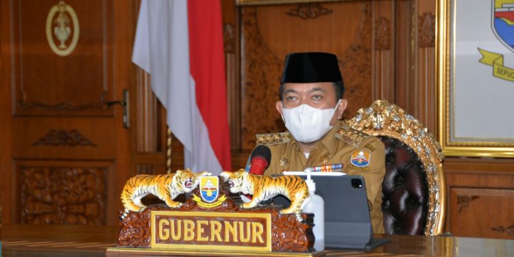 UPDATEKU.COM – Gubernur Jambi, Dr. H. Al Haris, S. Sos, M.H, mengikuti rapat terbatas bersama Presiden Republik Indonesia Ir. H. Joko Widodo (Jokowi) membahas mengenai antisipasi lonjakan kasus Pandemi Covid-19 dan penganan Covid-19, yang diikuti oleh Gubernur se-Indonesia dan Bupati/walikota se-Indonesia melalui Video Conference (Vidcon), bertempat di ruang rapat Gubernur Jambi Telanaipura, Senin (25/10/2021).