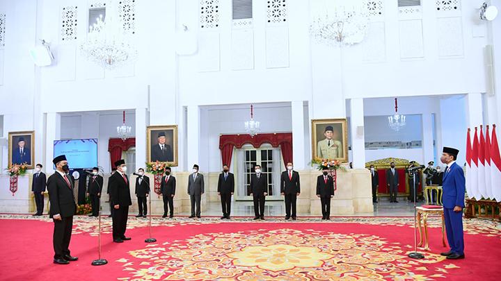 Setelah pelantikan, Presiden Jokowi memperkenalkan keduanya kepada para menteri Kabinet Indonesia Maju.