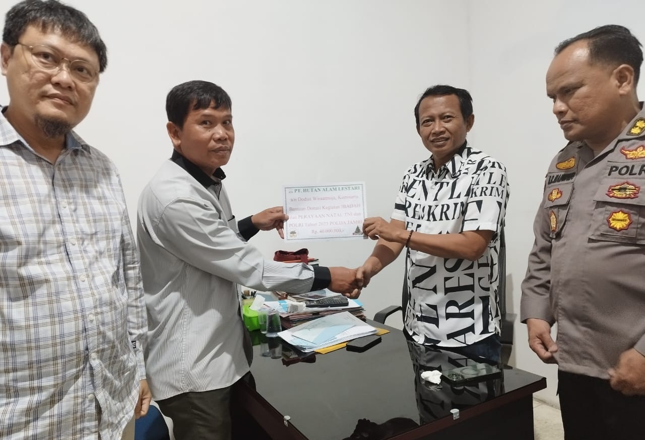 Kristian juga mengucapkan Selamat Natal dan Tahun Baru 2024 kepada Anggota Polri yang merayakan Natal dan Tahun Baru, semoga Damai Natal senantiasa memberikan Sukacitanya. Bantuan yang diberikan oleh Komisaris PT. Hutan Alam Lestari Dodiet Wiraatmaja diterima langsung oleh AKBP Kristian Adi Wibowo, SP, MH di Polda Jambi.